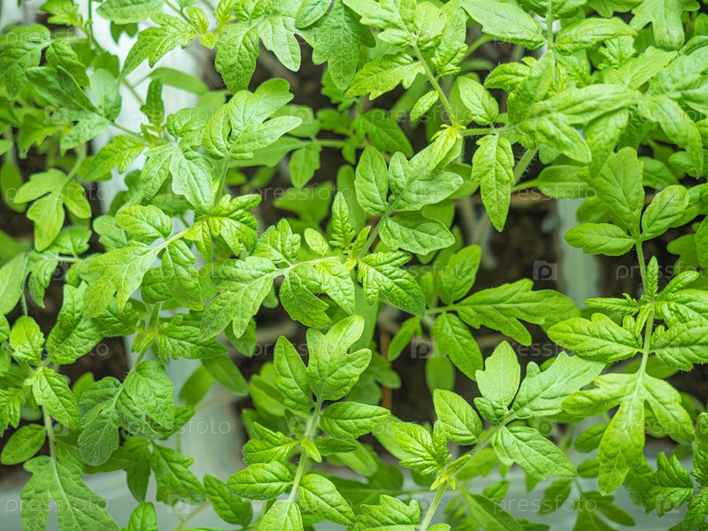 Молодые побеги рассады томатов