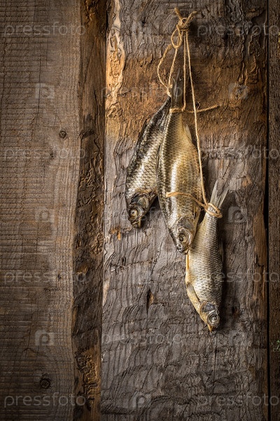 Сушеная рыба на старых досках