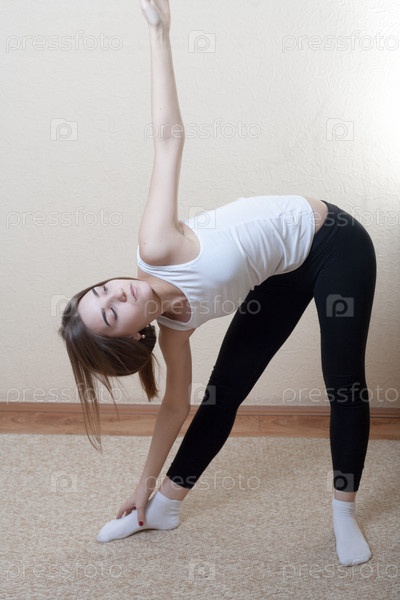 Девушка-блондинка занимается йогой
