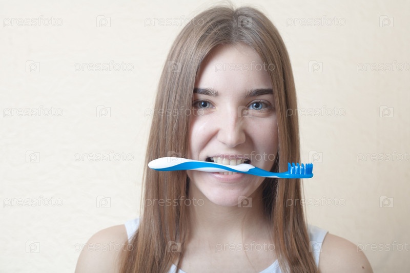 Портрет белокурой женщины с зубной щеткой
