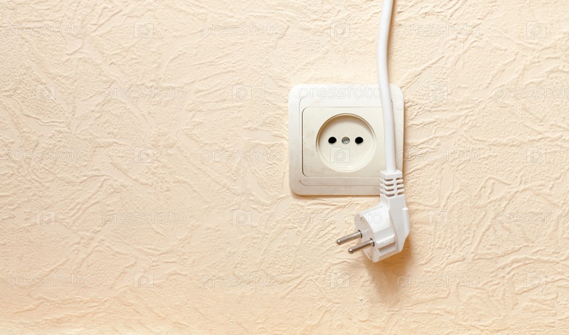 Электрическая розетка на бежевой стене