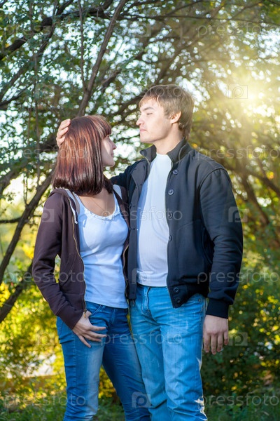 Счастливая молодая пара в парке
