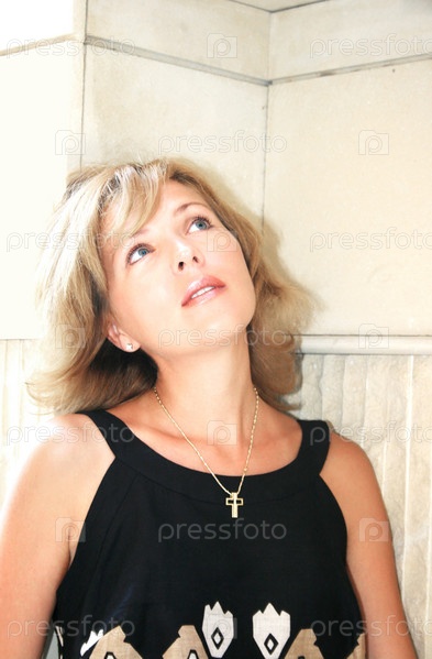 Симпатичная блондинка, смотрящая вверх