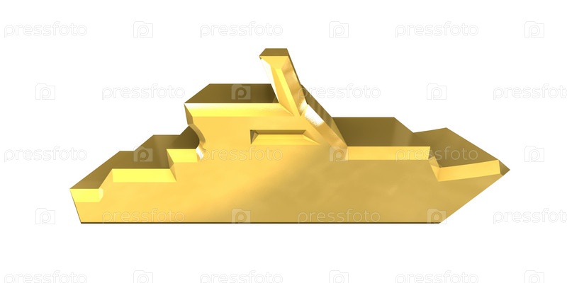 Значок яхты из золота на белом фоне, 3d