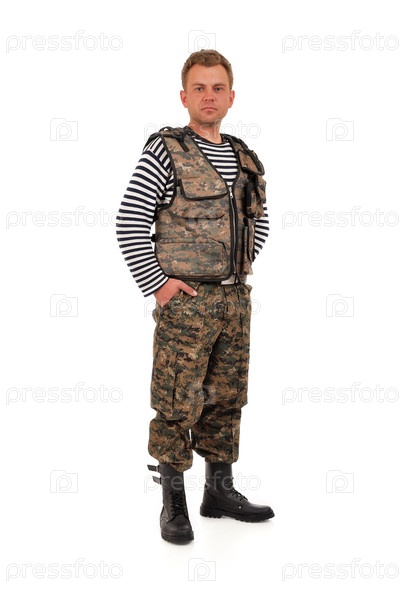 Мужчина в камуфляжной форме на белом фоне