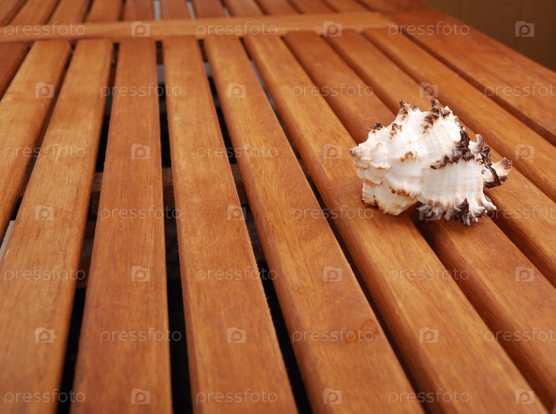 Морская ракушка на деревянной поверхности