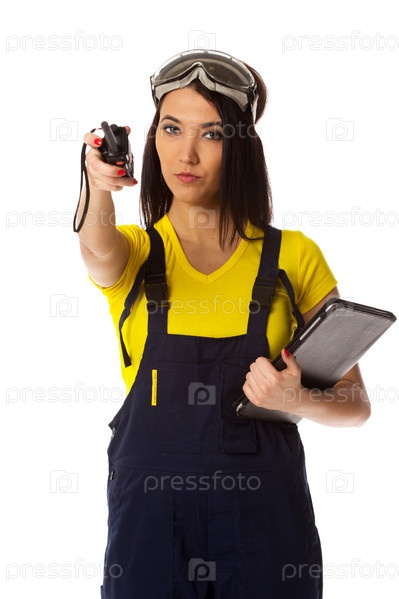 Рабочий с портативным трансивером определяет направление
