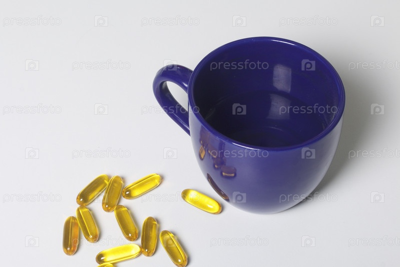 Желтые таблетки и кружка с водой