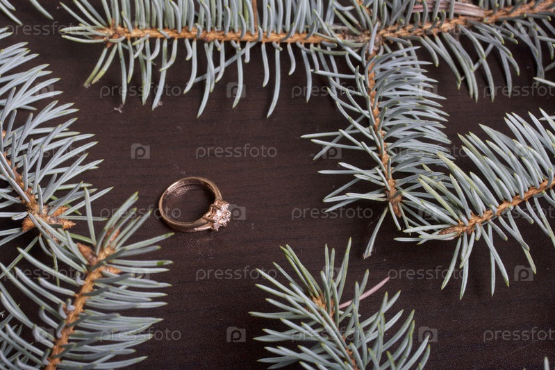 Золотое кольцо и ветви голубой ели