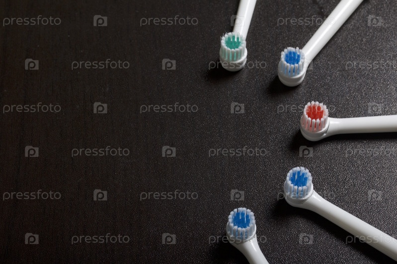 Насадки для электрической зубной щетки на темной поверхности