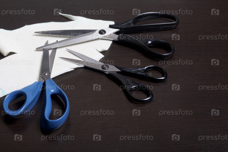 Три пары ножниц и ткань