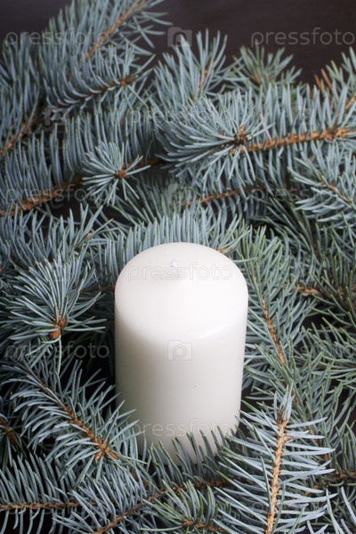 Ветви голубой ели и свечи белого цвета