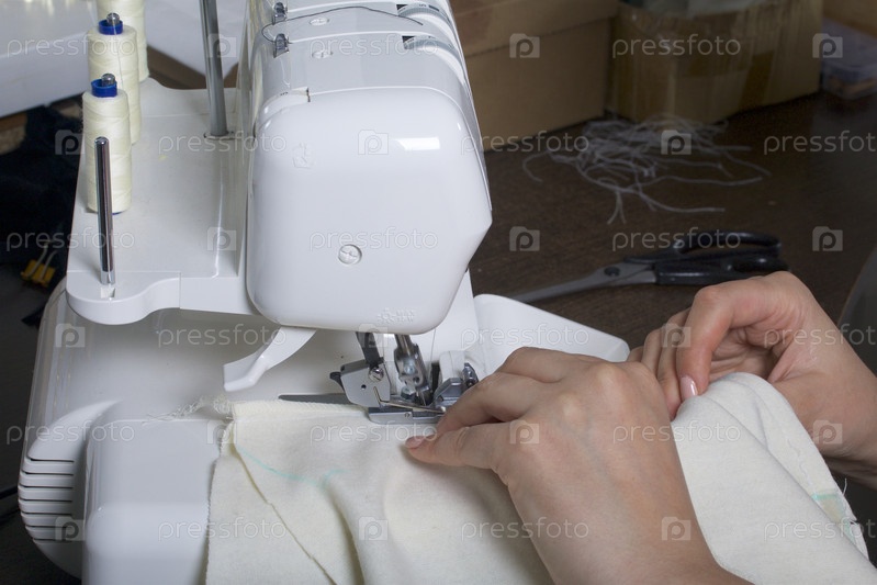 Женщина работает на оверлоке