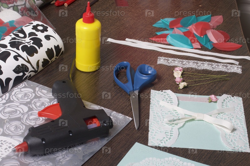 Девушка занимается изготовлением поздравительных открыток