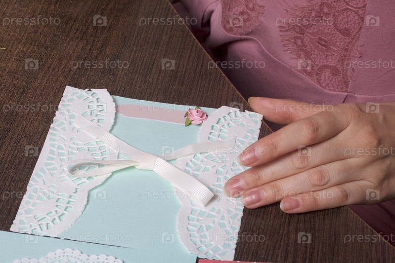 Девушка занимается изготовлением поздравительных открыток