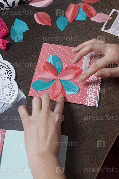 Девушка занимается изготовлением поздравительных открыток