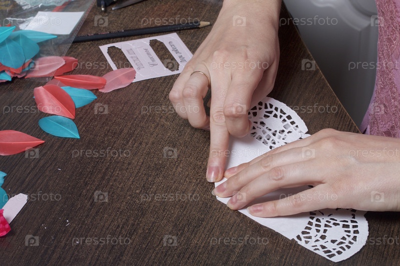 Девушка занимается изготовлением поздравительных открыток