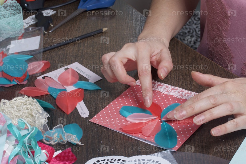 Девушка занимается изготовлением поздравительных открыток