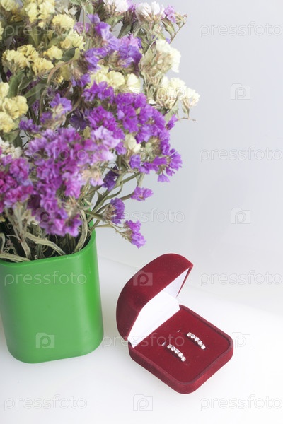 Букет из сухих цветов и коробка с подарком