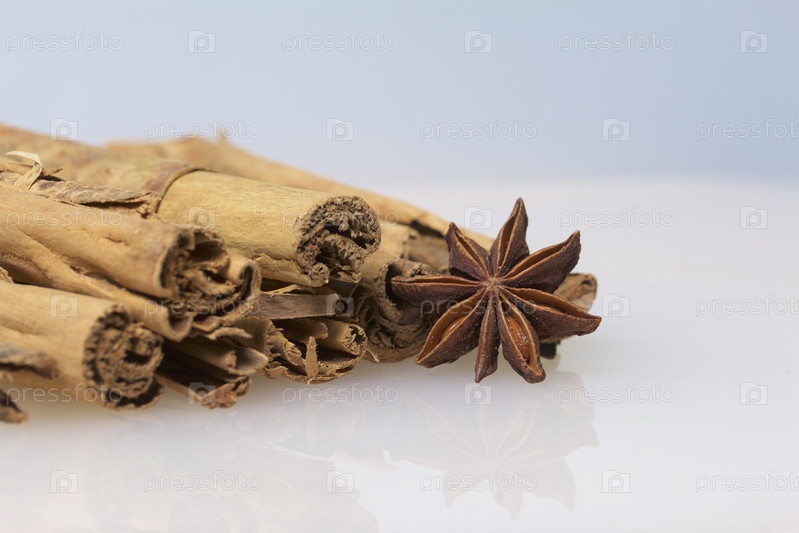 Специи. Корица и анис на белом фоне