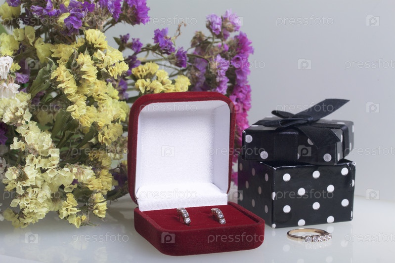 Букет из сухих цветов с коробкой с подарком