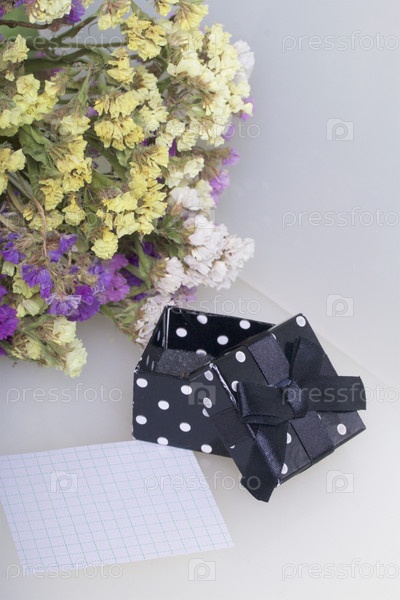 Букет из сухих цветов и коробка с подарком