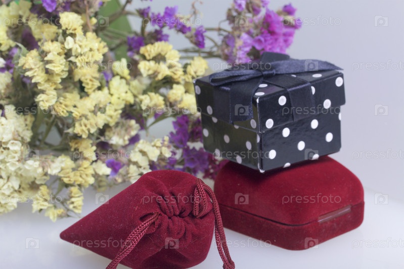 Букет из сухих цветов с коробкой с подарком