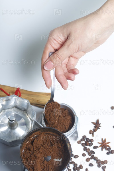 Гейзерная кофеварка, кофе и специи
