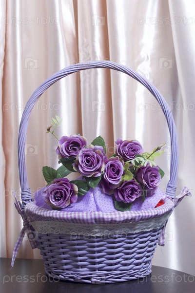 Корзина, сплетенная из лозы с цветами