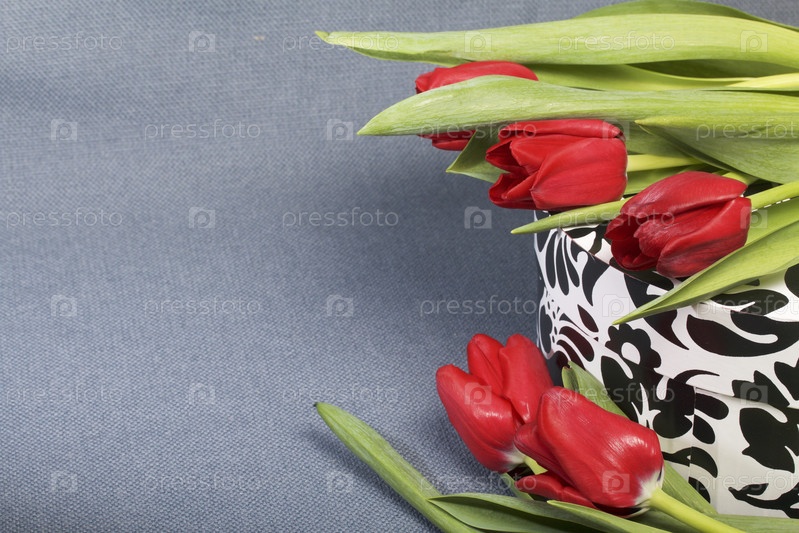 Букет из красных тюльпанов на коробке
