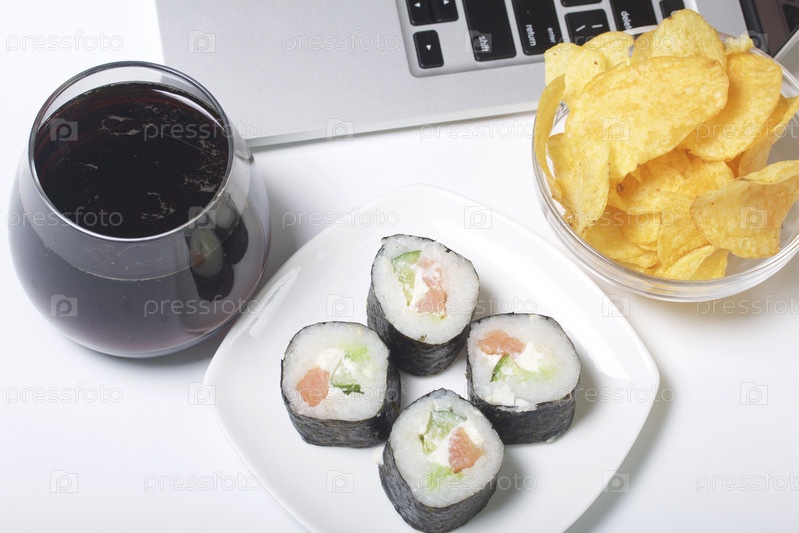Пиво, чипсы и суши с ноутбуком. Отдых выходного дня
