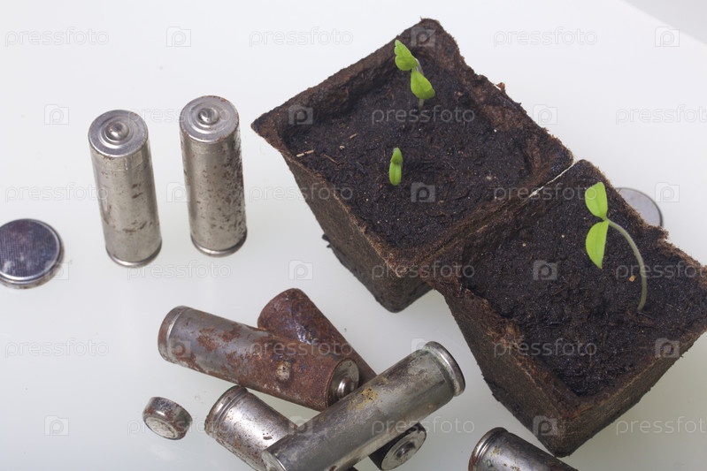 Молодые зеленые побеги и старые батарейки