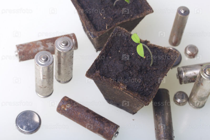 Молодые зеленые побеги и старые батарейки
