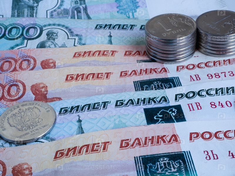 Русские монеты лежат на банкнотах