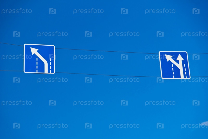 Дорожные знаки на проводе и небо