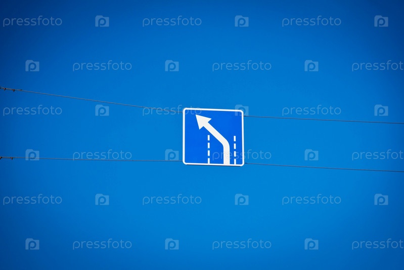 Дорожные знаки на проводах и небо