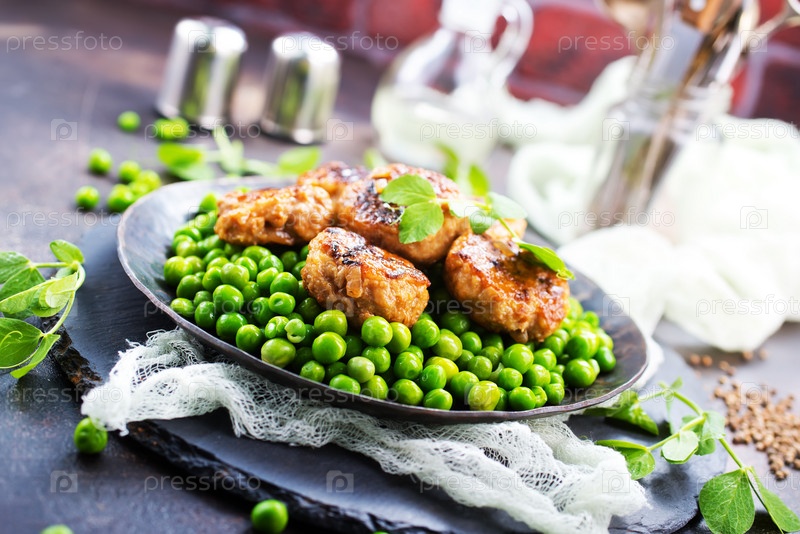 Зеленый горошек с котлетами