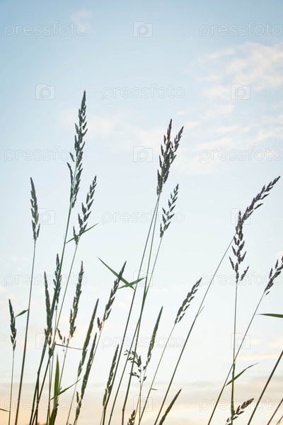 Травы на фоне неба с белыми облаками