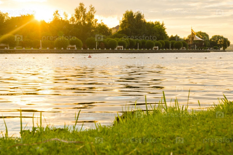 Закат над прудом в летний вечер