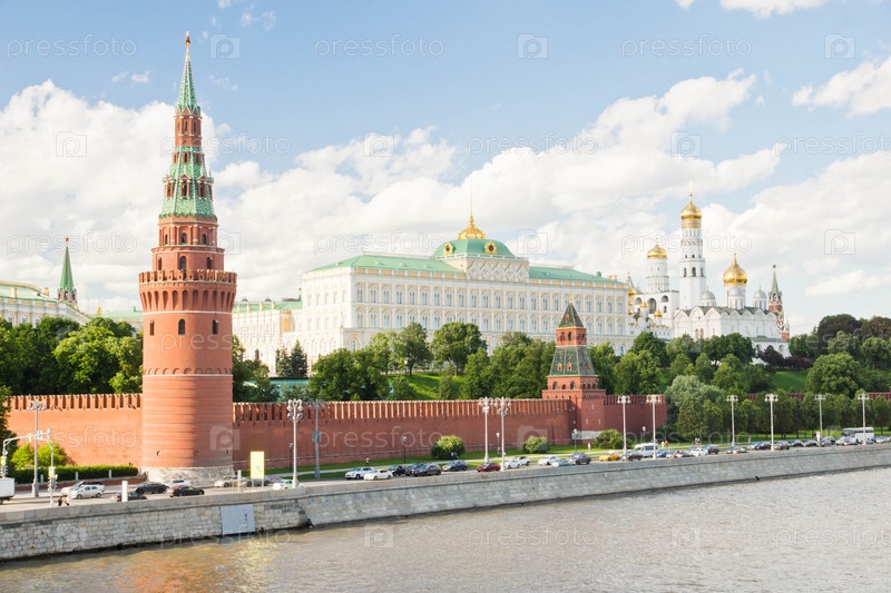 Стены и башни Московского Кремля в летний день