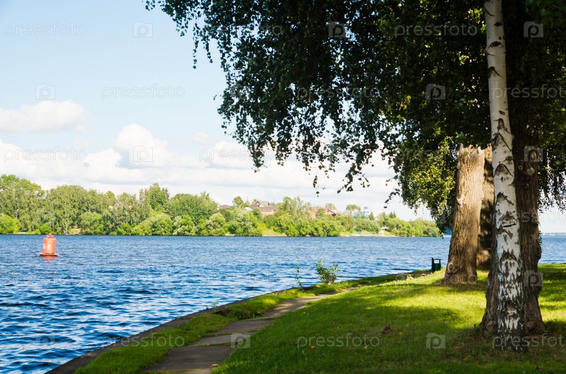 Лес и буй на озере в летнее время