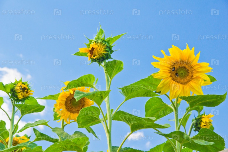 Красочные подсолнухи и голубое небо