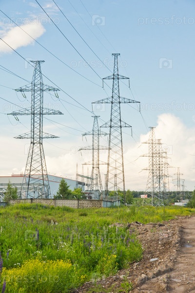 Несколько опор ЛЭП в летний день