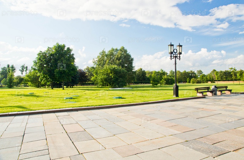 Уличный фонарь в городском парке в летний день