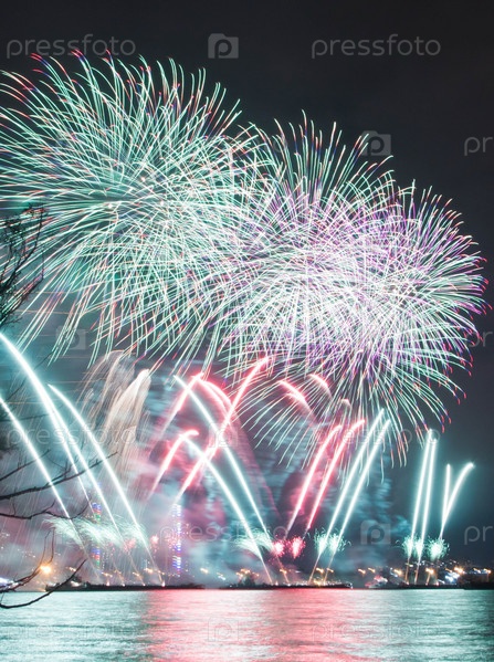 Красочный салют на праздник над озером