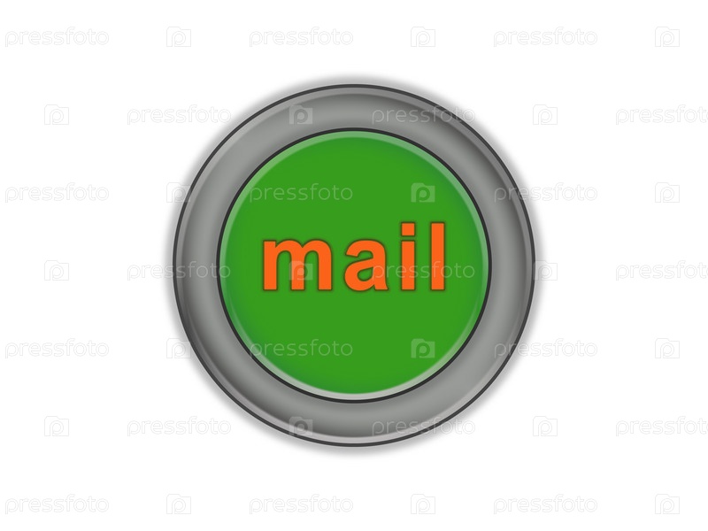 Зеленая кнопка почта, белый фон