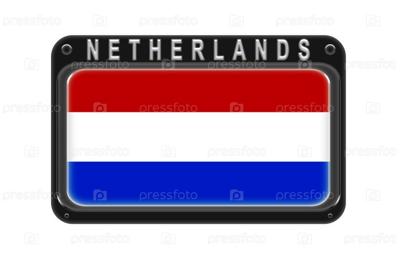 Флаг Нидерландов в кадре с заклепками на белом фоне