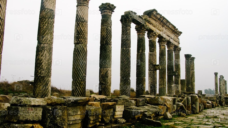Колоннада в Апамее в тумане, Сирия