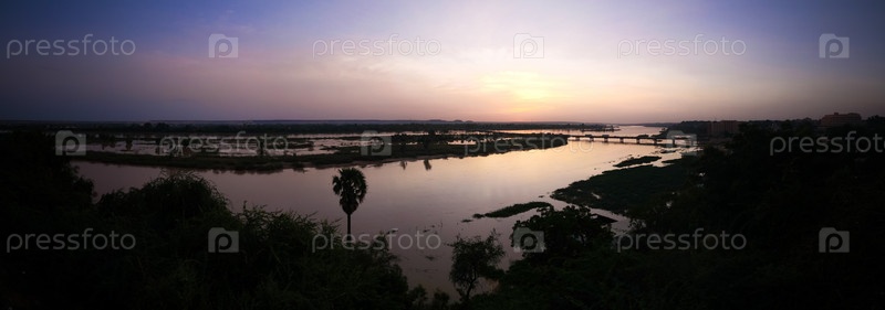 Вид с воздуха на реке Нигер в Ниамее на закате, Нигер