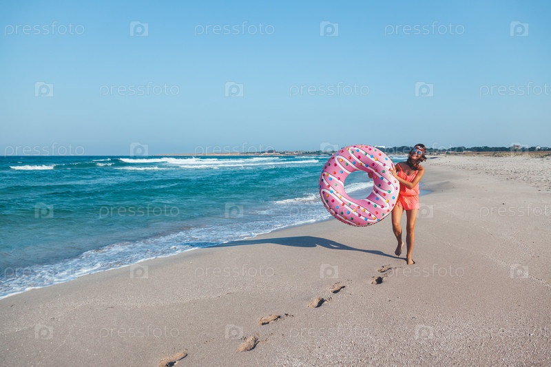 Девушка с пончиком на пляже